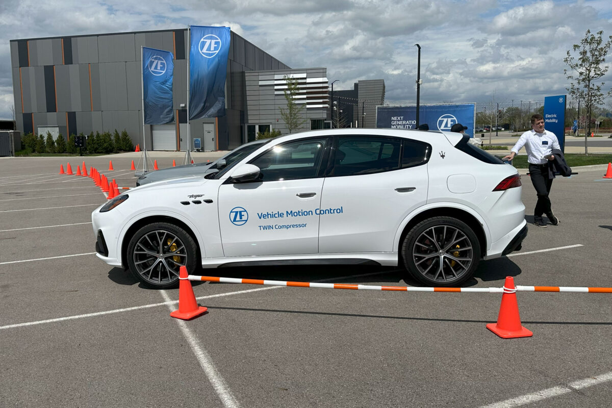 ZF demonstrated the Twin Compressor air suspension system in a Maserati Grecale SUV, but the technology is currently available in a range of different vehicles, including electrics from a variety of automakers, so you can experience it right now.